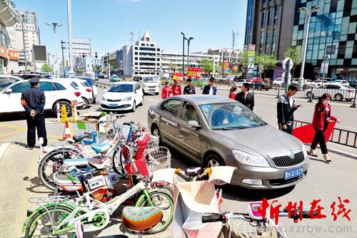 經(jīng)過連續(xù)幾年大干城建年和如火如荼的創(chuàng)衛(wèi)建設,忻州市民欣喜地看到城區(qū)發(fā)生了巨大的變化,路寬了,樹綠了,現(xiàn)代化建筑鱗次櫛比。城市硬件設施的提升,更需要文明軟實力的提升,可是總有一些人,自身素質跟不上文明的腳步,譬如近日記者在街頭看到,有人將電動車停放在機動車之間,有人扎堆將自行車電動車無序停放在街道邊,還有的司機在禁停標志前赫然停放車輛,讓城市秩序頓顯零亂之感。圖一為城區(qū)七一路網(wǎng)通公司門前自行車輛亂停亂放;圖二為有人將電動車停放在機動車之間;圖三為一輛轎車在禁停標志前橫跨盲道停放。(魯明強)