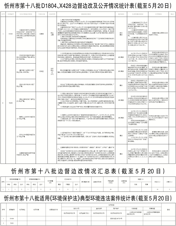 我市高度重視,立即組織查處,截至5月20日,督辦的4件和續(xù)報(bào)的2件群眾反映問題已辦結(jié)。其中,確認(rèn)部分屬實(shí)5件;確認(rèn)不屬實(shí)1件。對(duì)于部分屬實(shí)已辦結(jié)的環(huán)保問題,分別采取了相應(yīng)處理措施,其中罰款39.3萬(wàn)元,對(duì)30名相關(guān)責(zé)任人進(jìn)行了約談,對(duì)7名相關(guān)責(zé)任人進(jìn)行了黨紀(jì)政紀(jì)處分。對(duì)6件群眾反映問題調(diào)查處理情況進(jìn)行了信息公開。