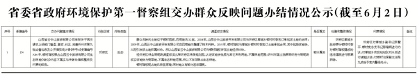 2017年6月3日9時,接收省委省政府環(huán)境保護(hù)第一督察組交辦第六批群眾反映問題8件;按重要性劃分,重點(diǎn)群眾反映問題4件、一般群眾反映問題4件;按區(qū)域分,忻府區(qū)3件、靜樂縣1件、保德縣1件、定襄縣1件、原平市1件、神池縣1件;按污染類型分,大氣5件、噪聲2件、垃圾1件、水1件、光1件、其他1件。