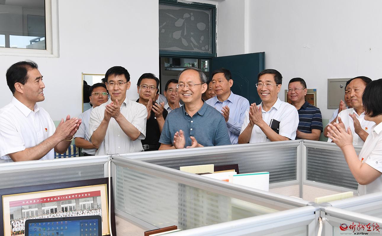 近年來,忻州一中優(yōu)生培養(yǎng)取得階段性成果,綜合辦學(xué)水平大幅提升,高考一本達(dá)線率連年在85%以上,二本達(dá)線率逼近百分之百,教育質(zhì)量享譽(yù)三晉,教學(xué)成績(jī)位列全省第一方陣,這些都離不開該校全體教師的辛勤付出。鄭連生一行詳細(xì)察看了校園環(huán)境,并到數(shù)學(xué)教研室與教師進(jìn)行交流,聽取教育教學(xué)意見,詢問工作生活上的困難。鄭連生指出,百年大計(jì),教育為本;教育大計(jì),教師為本,教師是教育事業(yè)發(fā)展的基礎(chǔ),要高度重視并切實(shí)抓好教師隊(duì)伍建設(shè),不斷提升教師的教學(xué)水平,為教師的工作和生活創(chuàng)造便利條件。各級(jí)各部門要始終堅(jiān)持教育優(yōu)先發(fā)展戰(zhàn)略,加大財(cái)政投入,加強(qiáng)政策支持,全面優(yōu)化教育發(fā)展環(huán)境,推動(dòng)忻州教育水平再上新臺(tái)階,為我市經(jīng)濟(jì)社會(huì)發(fā)展培養(yǎng)更多人才。