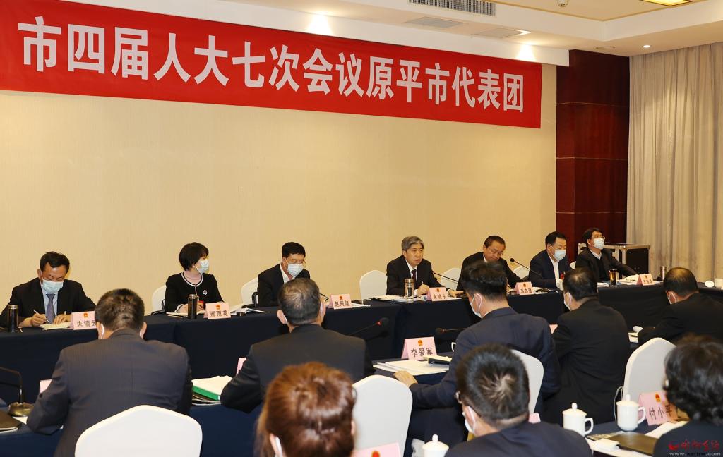 朱曉東在市四屆人大七次會議原平市代表團(tuán),同代表們一起審議政府工作報告。張存良 攝
