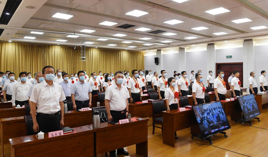 朱曉東在主持大會時強調(diào),全市各級黨組織和廣大黨員要深學(xué)細(xì)悟篤行習(xí)近平新時代中國特色社會主義思想,特別是習(xí)近平總書記視察山西重要講話重要指示,進一步提高政治判斷力、政治領(lǐng)悟力、政治執(zhí)行力,不斷增強“四個意識”、堅定“四個自信”、做到“兩個維護”。要以受表彰的優(yōu)秀個人和先進集體為標(biāo)桿,學(xué)習(xí)先進、爭當(dāng)先進、趕超先進,深入開展“我為群眾辦實事”實踐活動,充分發(fā)揮黨組織的戰(zhàn)斗堡壘作用和黨員的先鋒模范作用,以實際行動詮釋新時代共產(chǎn)黨人信念堅定、對黨忠誠、勇于擔(dān)當(dāng)、無私奉獻的崇高品格。要切實把思想和行動統(tǒng)一到黨中央、省委、市委決策部署上來,緊緊圍繞市委“336”戰(zhàn)略布局,積極投身我市奮力蹚出全面轉(zhuǎn)型忻州之路的生動實踐,奮進新時代,走好新征程,以優(yōu)異成績慶祝建黨一百周年。
