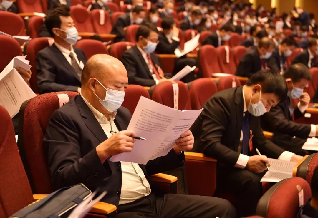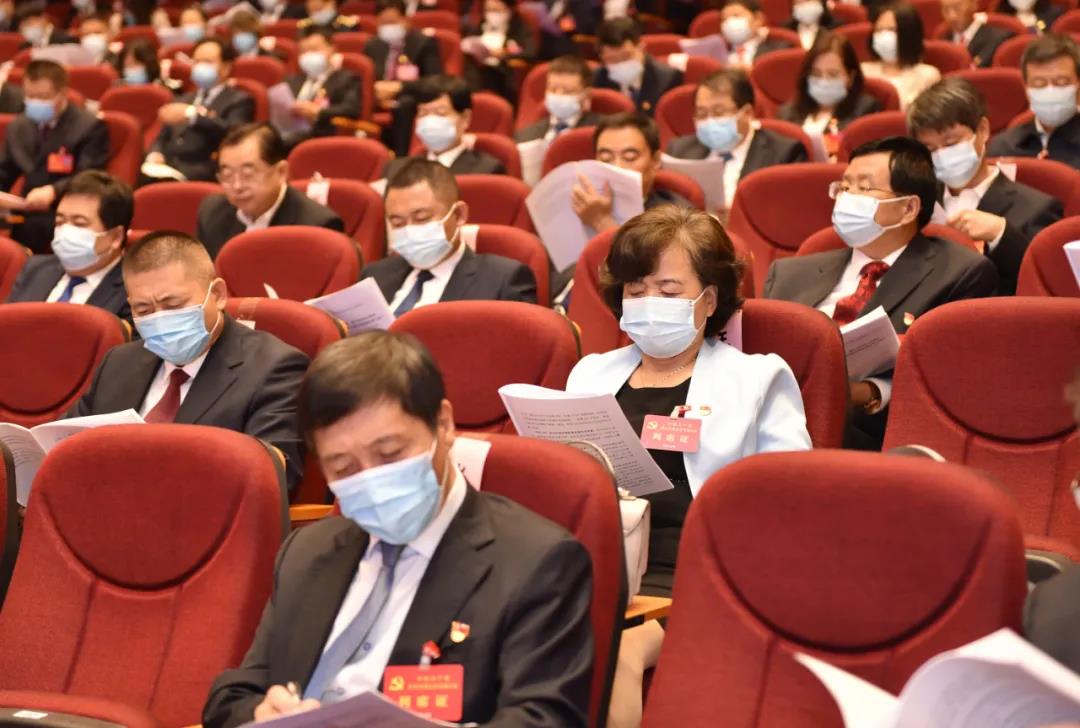開幕式氣氛莊嚴(yán)熱烈,代表們精神振奮。主席臺(tái)正上方懸掛著“中國共產(chǎn)黨忻州市第五次代表大會(huì)”的巨幅會(huì)標(biāo),會(huì)幕正中十面鮮艷的紅旗簇?fù)碇鹕鄣狞h徽。會(huì)場二樓的眺臺(tái)上懸掛著“弘揚(yáng)偉大建黨精神,踐行黨的初心使命,為建設(shè)宜居宜業(yè)宜創(chuàng)宜游創(chuàng)新型田園城市努力奮斗”的大型橫幅。
