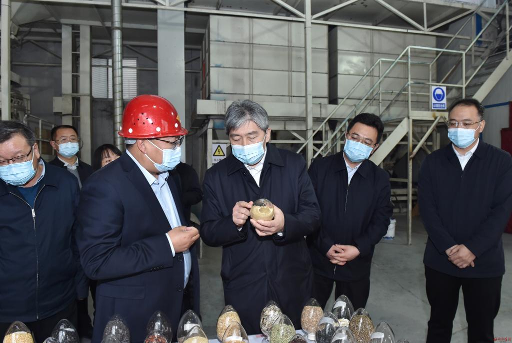 農(nóng)用物資儲(chǔ)備關(guān)系春耕備耕開(kāi)展。在五臺(tái)縣山西嘉瑞種業(yè)有限公司、定襄縣鑫豐盛農(nóng)業(yè)科技有限公司,朱曉東實(shí)地察看并詳細(xì)了解化肥、農(nóng)藥、籽種等物資儲(chǔ)備情況,詳細(xì)了解籽種種植、加工、生產(chǎn)情況,聽(tīng)取大豆玉米帶狀復(fù)合種植實(shí)施技術(shù)介紹并察看相關(guān)機(jī)械設(shè)備。朱曉東指出,種子是農(nóng)業(yè)的“芯片”,忻州雜糧種子資源豐富,要以市場(chǎng)需求為導(dǎo)向,堅(jiān)持育種引種并重、良種良法配套、農(nóng)機(jī)農(nóng)藝融合,聚焦主要品種、關(guān)鍵環(huán)節(jié),匯聚資源、集中攻關(guān),助推農(nóng)業(yè)種業(yè)向“特”“優(yōu)”方向發(fā)展,確保農(nóng)業(yè)穩(wěn)產(chǎn)保供、農(nóng)民穩(wěn)步增收、農(nóng)村穩(wěn)定和諧。