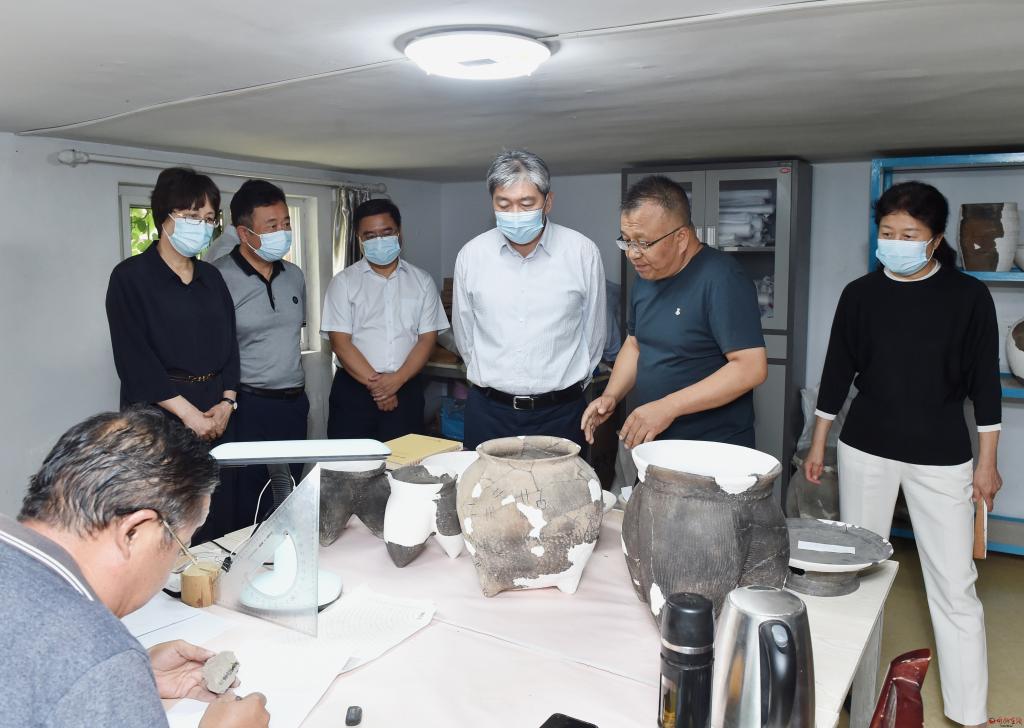 朱曉東一行先后深入忻府區(qū)北城門樓、市文物考古研究所、市博物館、忻口戰(zhàn)役遺址等處,詳細(xì)了解我市省級(jí)文物保護(hù)單位文物保護(hù)修繕工程進(jìn)展、全市文物保護(hù)工作及考古研究成果、文物陳列布展、全國(guó)重點(diǎn)文物保護(hù)單位文物保護(hù)等情況,對(duì)做好文物保護(hù)管理研究、文化遺產(chǎn)宣傳利用、加強(qiáng)博物館建設(shè)、注重專業(yè)人才培養(yǎng)等工作提出指導(dǎo)意見(jiàn)。