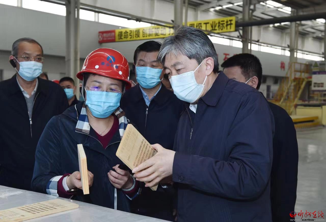 泰山石膏忻州有限公司產(chǎn)銷量均居同行業(yè)首位,被譽為中國紙面石膏板行業(yè)的領跑者。朱曉東深入企業(yè)車間宣講黨的二十屆二中全會和習近平總書記在全國兩會期間重要講話及全國兩會精神,聽取負責人工作匯報,詳細了解項目建設、企業(yè)生產(chǎn)經(jīng)營、產(chǎn)品研發(fā)、安全生產(chǎn)等方面的情況。他指出,要把學習貫徹黨的二十屆二中全會精神與學習宣傳貫徹黨的二十大精神結合起來,與貫徹落實全國兩會精神結合起來,在學深悟透、宣講培訓、知行合一上持續(xù)用力,深刻理解和準確把握習近平總書記關于“牢牢把握高質(zhì)量發(fā)展這個首要任務”和“四個必須”的重要論述,深入落實“三個更好統(tǒng)籌”,確保黨的二十大精神在忻州落地生根、開花結果。