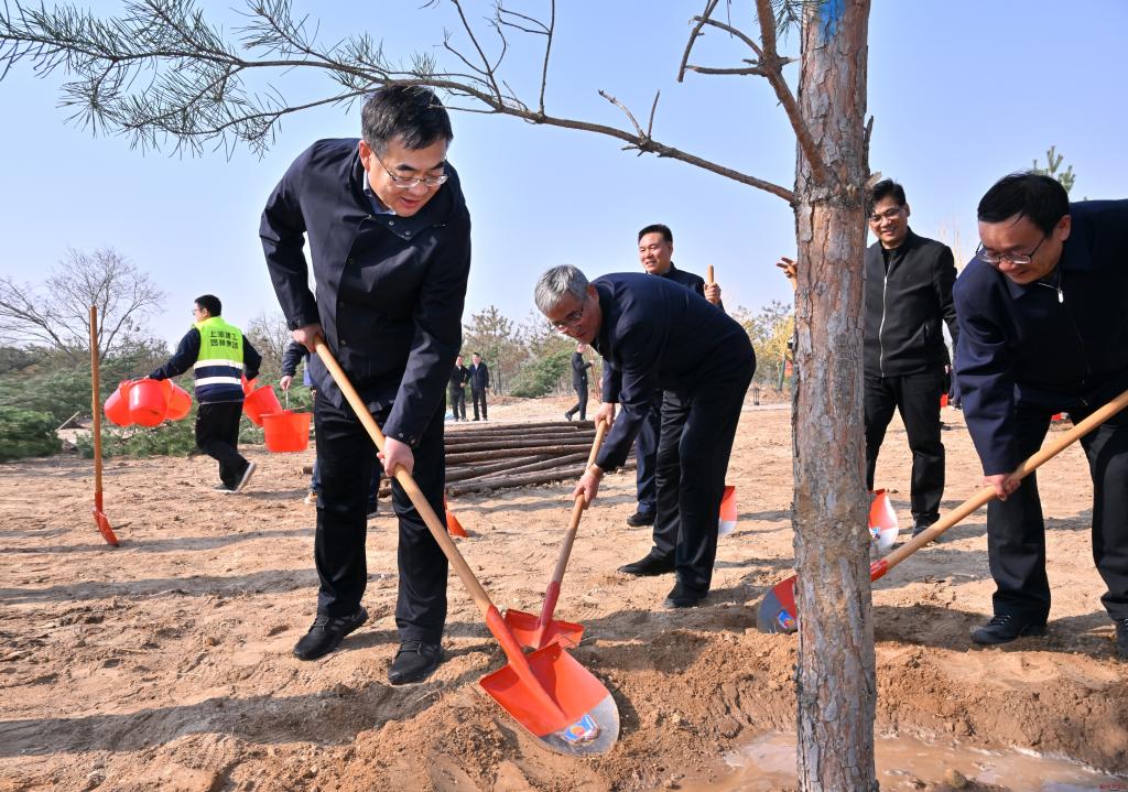當(dāng)日上午,朱曉東一行抵達(dá)牧馬河生態(tài)公園植樹點(diǎn),首先聽取忻府區(qū)牧馬河生態(tài)公園項(xiàng)目總體規(guī)劃情況匯報(bào),詳細(xì)了解牧馬河流域生態(tài)修復(fù)工程項(xiàng)目進(jìn)展情況。隨后,大家拿起鐵鍬、水桶等工具,走向植樹地點(diǎn),分工協(xié)作、配合默契,鏟土、移苗、扶苗、澆水、踩實(shí)……植樹現(xiàn)場(chǎng)繁忙而有序,一派熱火朝天景象。春風(fēng)過(guò)處,一株株新栽種的苗木錯(cuò)落有致、迎風(fēng)挺立,萌發(fā)著無(wú)限生機(jī)和希望。