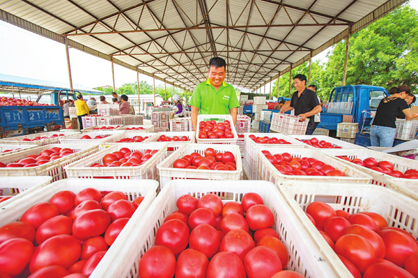 6月2日,夏縣廟前鎮(zhèn)楊村西紅柿喜迎大豐收,村民抓緊采摘包裝發(fā)往全國各地。該村已有20年種植西紅柿歷史,近年來經(jīng)過產(chǎn)業(yè)結(jié)構(gòu)調(diào)整、優(yōu)選育種,種植面積不斷擴大,西紅柿目前暢銷北京、上海、西安等地,菜農(nóng)借此每畝可收入5000元以上。(楊建峰攝)