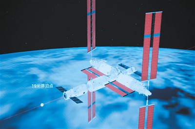 天舟七號貨運(yùn)飛船與空間站組合體進(jìn)行交會對接的模擬圖像。新華社發(fā)