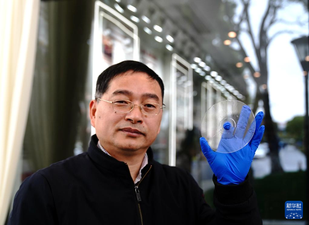2月21日,上海光機(jī)所阮昊研究員展示“超級(jí)光盤(pán)”。新華社記者張建松 攝