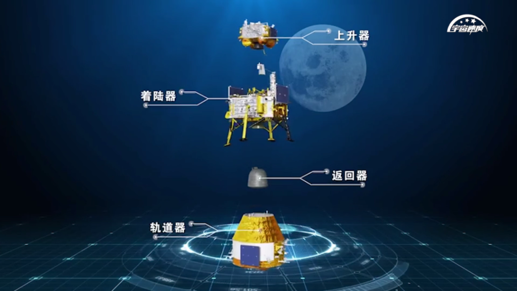 嫦娥六號(hào)四器組合體示意圖。