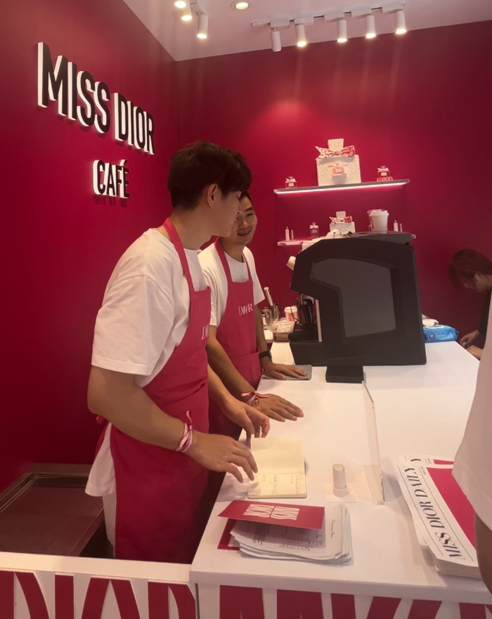迪奧快閃店內(nèi)粉紅色的布置十分吸睛。