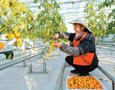 2024年12月19日,江西省瑞昌市高標(biāo)準(zhǔn)設(shè)施蔬菜示范中心,工人正在采摘西紅柿。魏東升攝(人民視覺(jué))
