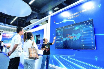10月26日,工作人員在湖南株洲國際會展中心向觀眾介紹北斗技術(shù)在交通管理系統(tǒng)中的應(yīng)用。新華社記者 陳思汗攝