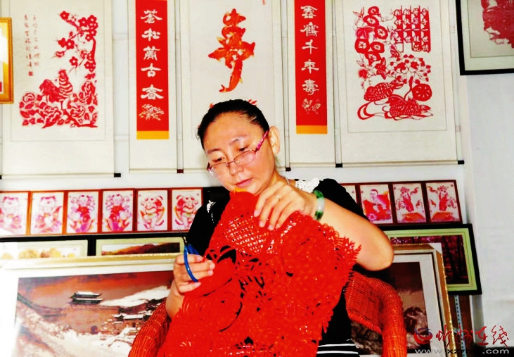 2017年7月,忻州市在北京恭王府舉行了為期40天的非物質(zhì)文化遺產(chǎn)展銷活動(dòng),吸引了大量北京市民和外地游客前來觀看,一些非遺文化產(chǎn)品供不應(yīng)求,展銷活動(dòng)取得巨大成功。張巖松作為市非物質(zhì)文化遺產(chǎn)傳承人、代縣雁剪閣文化藝術(shù)有限公司設(shè)計(jì)師帶隊(duì)參加了這次活動(dòng)。起初,她們只帶了五件掛軸、二十多個(gè)小鏡框做展示。布展當(dāng)天,展品掛好不到一小時(shí),就被顧客搶購一空。于是,張巖松只能打電話,讓人們連夜開車把展品送來。此次展銷活動(dòng),讓張巖松大開眼界,她對(duì)剪紙藝術(shù)更加熱愛、更有信心了。