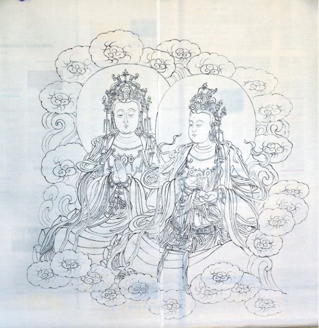 在李向東看來,臨寫是為了學(xué)習(xí)而不是“復(fù)制”壁畫。面對殘破或年久漫漶不清的畫面,他從蛛絲馬跡入手反復(fù)揣摩,根據(jù)壁畫整體的線描、造型特點,一一補而畫之,最后定稿。從這個意義上說,李向東也使殘破的公主寺壁畫得以復(fù)原,“補壁”之功不可小覷。