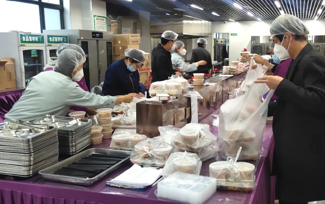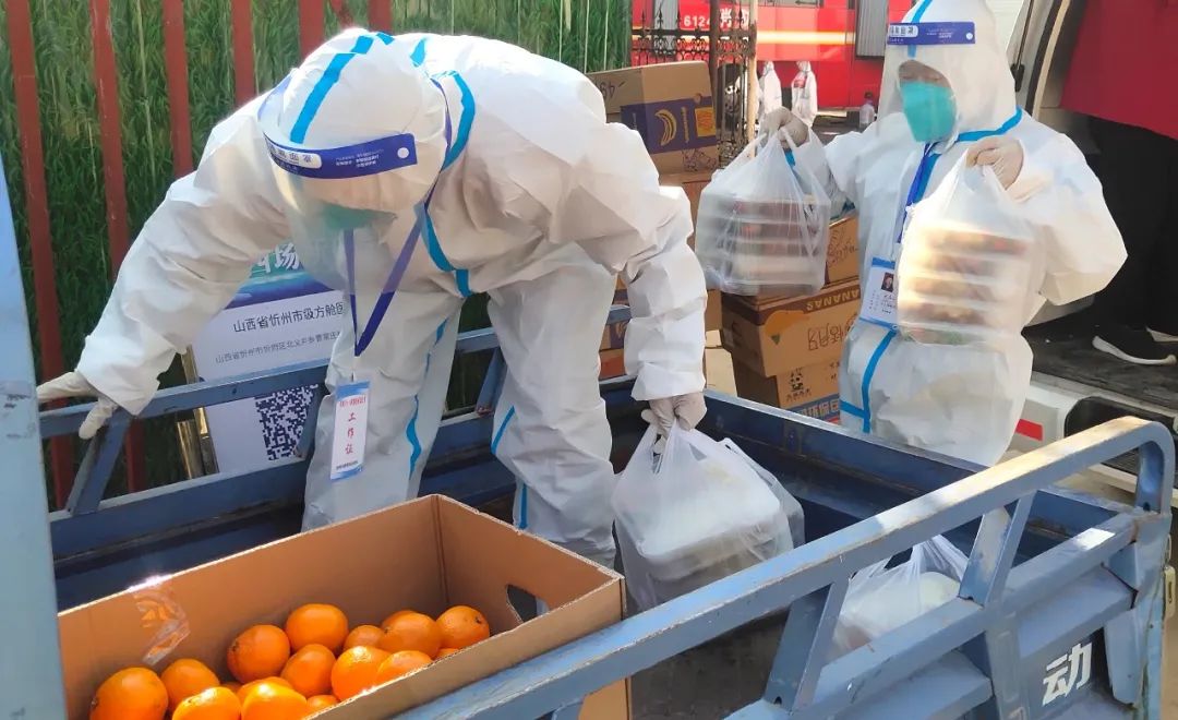 市級(jí)方艙醫(yī)院?jiǎn)⒂靡詠?,作為抗疫主力軍的護(hù)航者,后勤是這場(chǎng)疫情保衛(wèi)戰(zhàn)的關(guān)鍵一環(huán)。為做好方艙醫(yī)院運(yùn)行后的餐飲、生活用品及工作人員的住宿等后勤保障服務(wù)工作,忻州市級(jí)方艙醫(yī)院后勤保障工作組夜以繼日,辛苦奉獻(xiàn),始終和醫(yī)療團(tuán)隊(duì)從黑夜到黎明奮戰(zhàn)在一線。18日中午12點(diǎn),記者來到忻州市方艙醫(yī)院大門口看到,方艙內(nèi)外保障組工作人員正在交接餐食,一包包盒飯、水果從餐車拿出來放到三輪車上,然后由艙內(nèi)后勤保障組工作人員送到方艙內(nèi)醫(yī)護(hù)人員的手中。