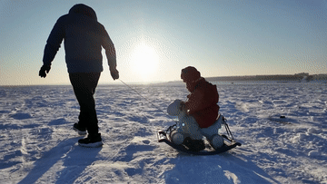 拖拉機拉著雪圈起舞旋轉(zhuǎn)