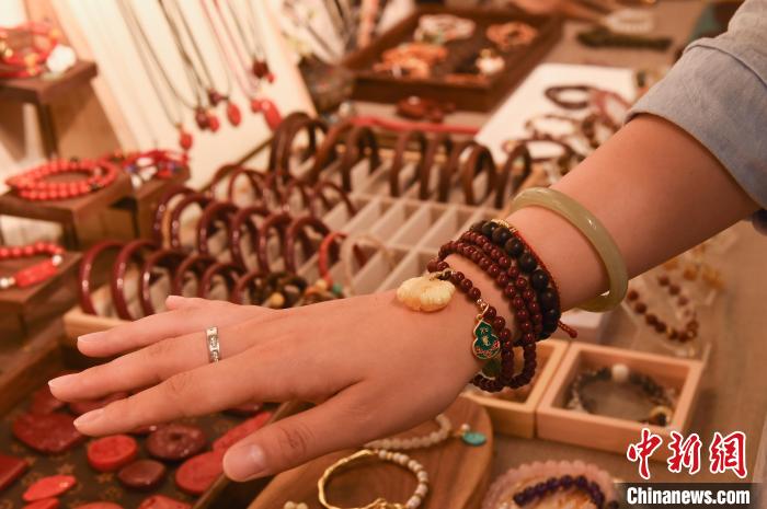 “女朋友喜歡逛博物館,也喜歡穿國風服裝,這款手鏈很適合她。”顧客李子霖認為,佩戴國風首飾給生活增添了時尚。