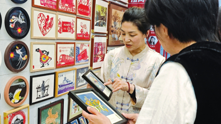 初夏時(shí)節(jié),走進(jìn)山西上林苑傳統(tǒng)剪紙藝術(shù)研究所,身著一襲傳統(tǒng)服飾的王銀鳳笑吟吟地講述了她與太原剪紙、與非遺研培的往事,她的身后是內(nèi)容多樣、色彩豐富的剪紙作品。與剪紙結(jié)緣四十余載,王銀鳳剪出了一段充滿(mǎn)堅(jiān)守與創(chuàng)新的人生故事。