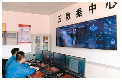 在屯蘭礦云數(shù)據(jù)中心,工作人員在實時監(jiān)控。