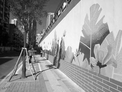 黃色、粉色的花,挺著碧綠的莖稈,像亭亭玉立的少女眺望著遠(yuǎn)方;寬大的芭蕉葉,有兩米高……走在文化墻邊,也能有漫步公園的感覺。太原市迎澤區(qū)迎澤街道青年路一社區(qū)東陵里,百米長(zhǎng)的手繪文化墻剛一亮相,就成了周邊居民的“打卡”地。