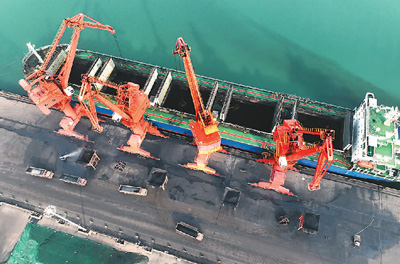 連日來,江蘇連云港港加快冬季電煤運(yùn)輸和儲(chǔ)備,全力保障發(fā)電企業(yè)供暖用煤需求。圖為11月22日,貨輪在連云港港煤炭碼頭卸載電煤。王 春攝(人民視覺)