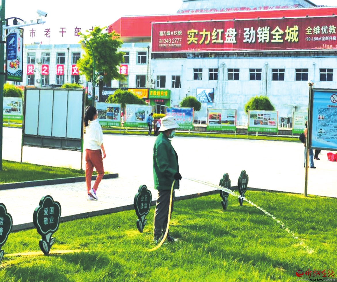 近日,市園林服務(wù)中心工作人員對我市城區(qū)體育廣場的綠化帶進行澆水。近期,該中心加強對城區(qū)廣場綠地樹木的修剪、澆水、維護,確保綠化苗木健康生長,助力綠色忻州的建設(shè)。 (實習(xí)生 許寧寧 攝)