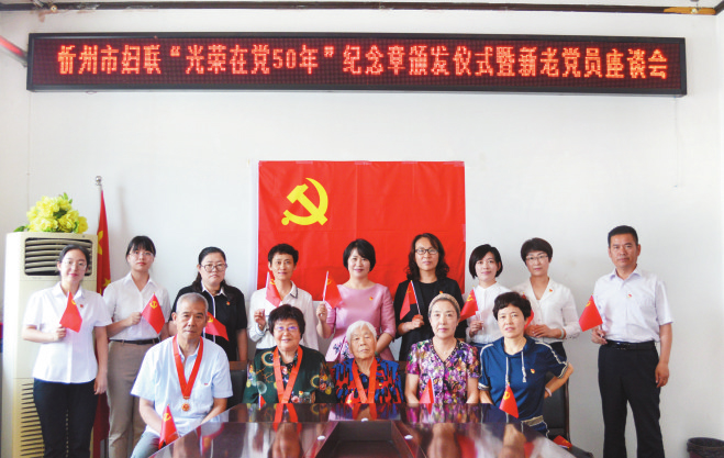 本報訊 6月25日上午,忻州市婦聯(lián)舉行“光榮在黨50年”紀(jì)念章頒發(fā)儀式暨新老黨員座談會。市婦聯(lián)機關(guān)在職黨員干部和老黨員代表參加。