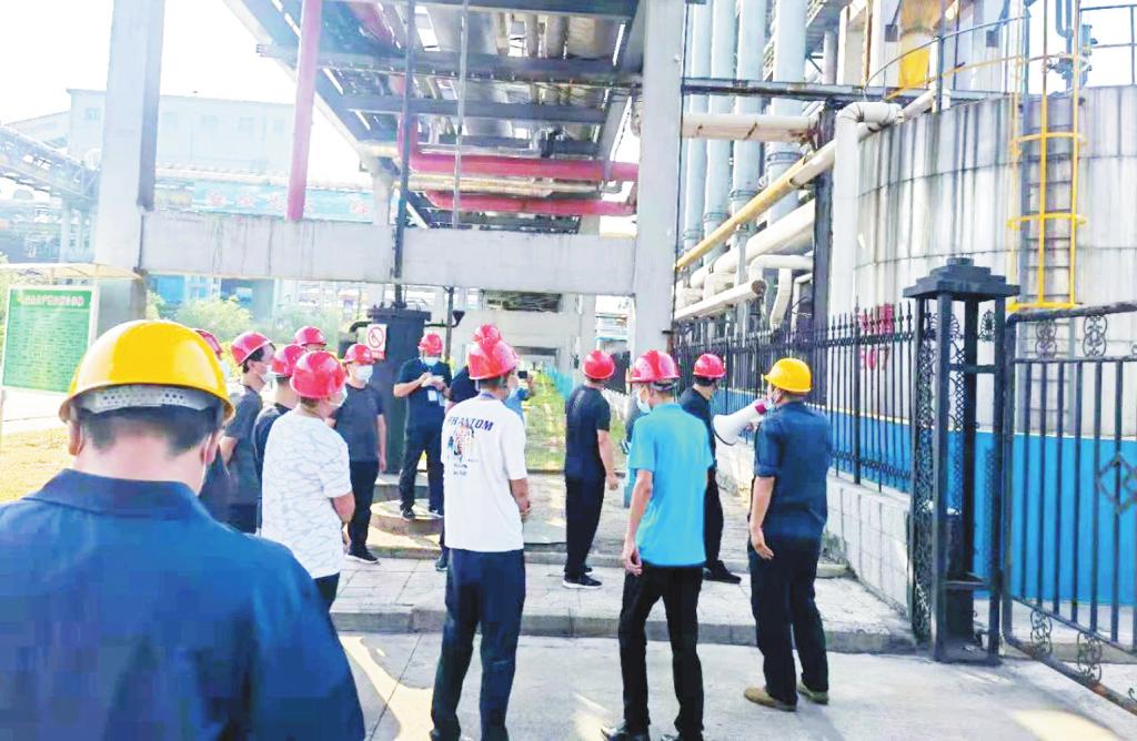 參賽人員深入企業(yè)生產(chǎn)車間,從生產(chǎn)工藝源頭開始,逐一對照講解內(nèi)容,聽取了企業(yè)環(huán)保管理人員對企業(yè)生產(chǎn)工藝流程、污染防治設(shè)施運行等的講解。