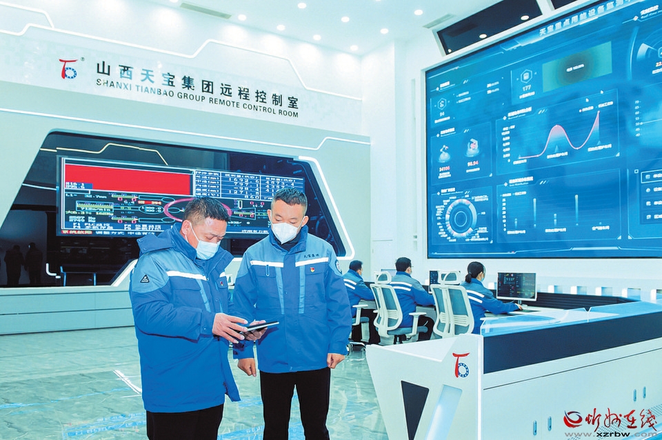 在遠(yuǎn)程控制室的山西天寶集團(tuán)有限公司黨支部書記、董事長胡大為正在通過大屏,實(shí)時查看訂單生產(chǎn)進(jìn)度,了解設(shè)備運(yùn)行狀況。
