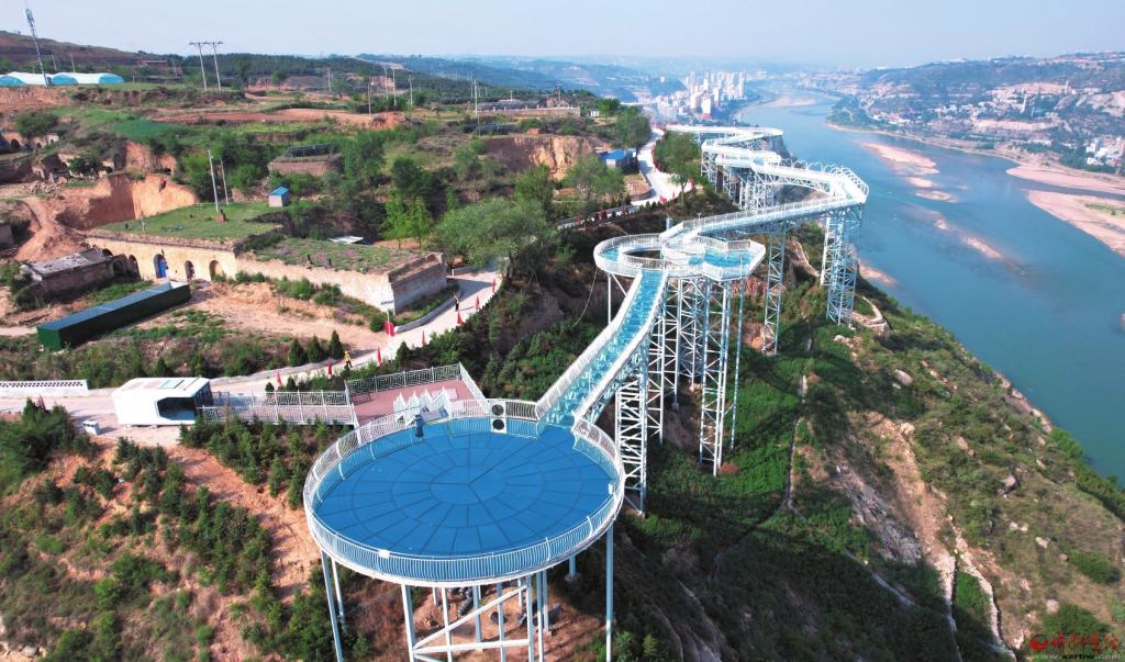 本報訊(記者魯明強 張劍雄)傍晚時分,位于保德縣城東北部的義門鎮(zhèn)廟峁村山巔的玻璃棧道霓虹閃爍,游人絡繹不絕。人們在玻璃棧道眺望遠方,奔流不息的黃河、巍然屹立的天橋水電站、華燈初上的保德縣城和府谷縣城夜景盡收眼底。人們在燈光璀璨的九曲黃河造型的玻璃棧道上走過一個個聲光電烘托的主題區(qū)域,體驗著自由浪漫、驚險刺激的樂趣。這是近日記者在保德縣采訪時看到的情景。