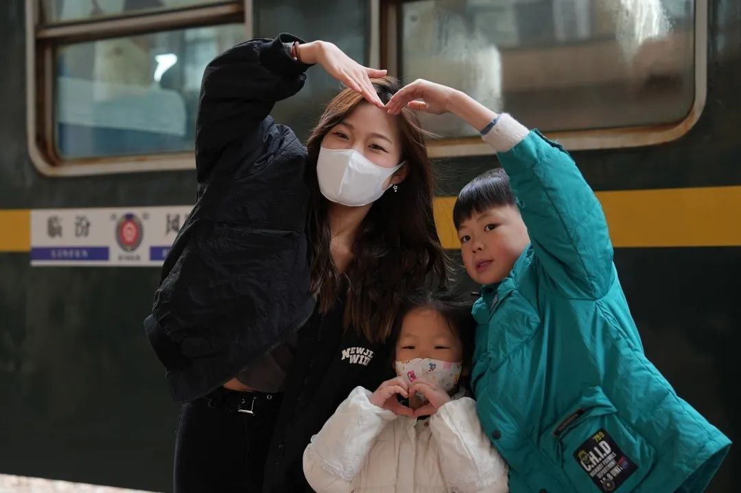 列車駛出運城站,工作人員開始為旅客熱心介紹打卡拍照的最佳地點和周邊的名勝古跡,并且精心準備了小道具,方便大家打卡拍照。