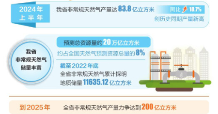 我省非常規(guī)天然氣儲(chǔ)量豐富,預(yù)測(cè)總資源量約20萬(wàn)億立方米,約占全國(guó)天然氣預(yù)測(cè)資源總量的8%;截至2022年底,全省非常規(guī)天然氣累計(jì)探明地質(zhì)儲(chǔ)量11635.12億立方米。據(jù)了解,全省目前進(jìn)行工業(yè)規(guī)模開(kāi)采的非常規(guī)天然氣主要包括煤層氣、頁(yè)巖氣、致密砂巖氣,已經(jīng)形成較為完整的產(chǎn)業(yè)鏈條,正向著把資源優(yōu)勢(shì)更好地轉(zhuǎn)化為產(chǎn)業(yè)優(yōu)勢(shì)的方向努力發(fā)展。2023年發(fā)布的《山西省非常規(guī)天然氣行業(yè)碳達(dá)峰實(shí)施方案》提出,要加快開(kāi)展非常規(guī)天然氣資源勘探,大力推進(jìn)非常規(guī)天然氣開(kāi)發(fā),到2025年全省非常規(guī)天然氣產(chǎn)量力爭(zhēng)達(dá)到200億立方米。