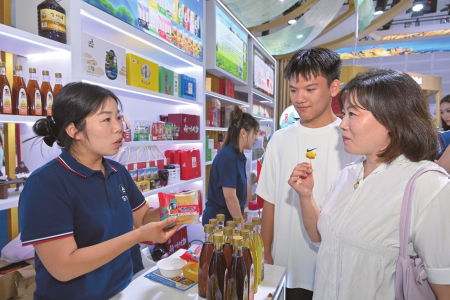 8月21日,忻州展區(qū),市民正在品嘗神池月餅,了解胡麻油制作過(guò)程。本報(bào)記者申晉光攝 (責(zé)任編輯:梁艷) |
