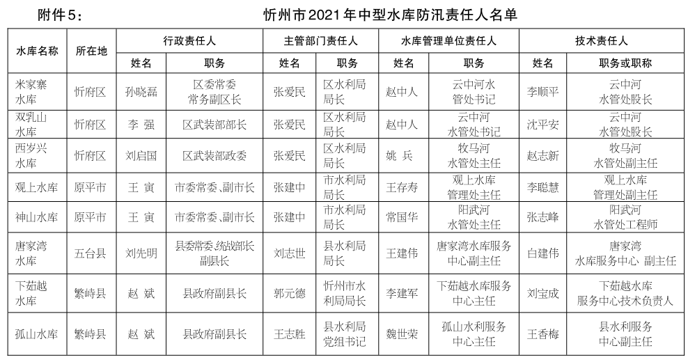 5.忻州市2021年中型水庫防汛責任人名單