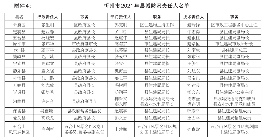 4.忻州市2021年縣城防汛責任人名單