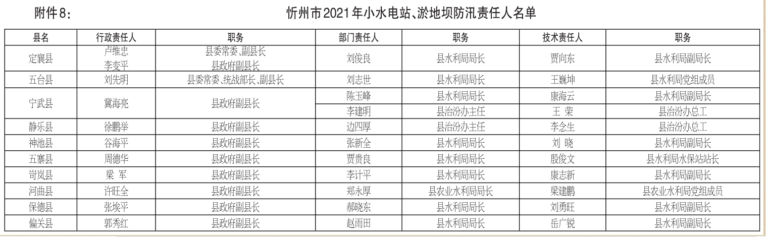 8.忻州市2021年小水電站、淤地壩防汛責任人名單