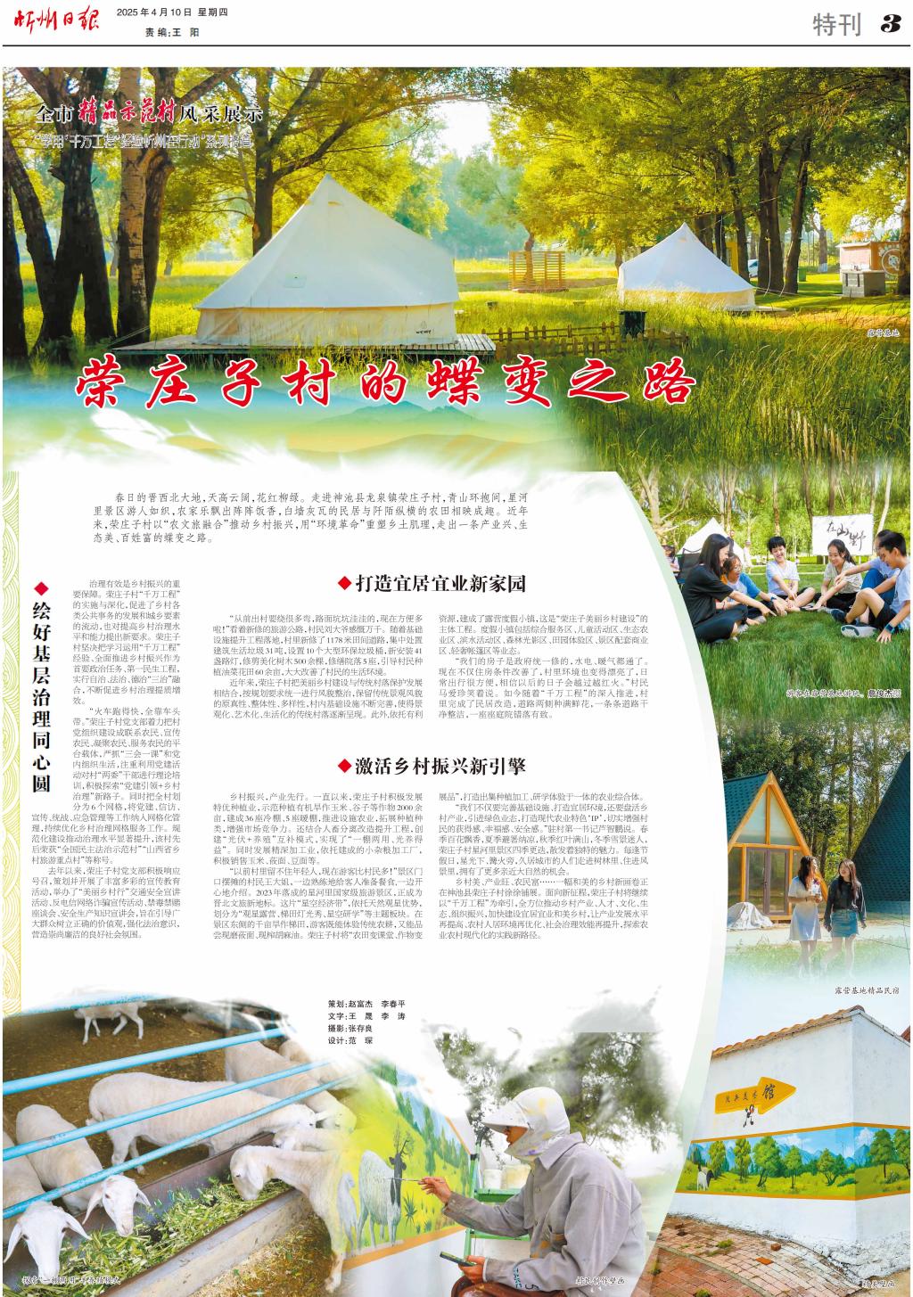 春日的晉西北大地,天高云闊,花紅柳綠。走進神池縣龍泉鎮(zhèn)榮莊子村,青山環(huán)抱間,星河里景區(qū)游人如織,農(nóng)家樂飄出陣陣飯香,白墻灰瓦的民居與阡陌縱橫的農(nóng)田相映成趣。近年來,榮莊子村以“農(nóng)文旅融合”推動鄉(xiāng)村振興,用“環(huán)境革命”重塑鄉(xiāng)土肌理,走出一條產(chǎn)業(yè)興、生態(tài)美、百姓富的蝶變之路。