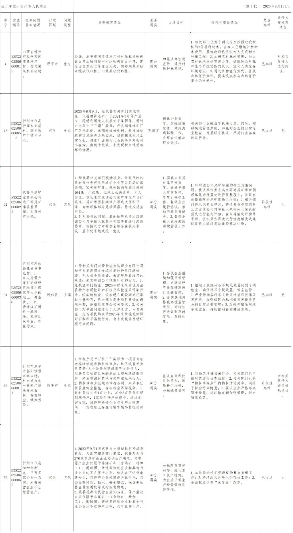 中央生態(tài)環(huán)境保護(hù)督察組群眾信訪舉報(bào)轉(zhuǎn)辦和邊督邊改公開情況一覽表