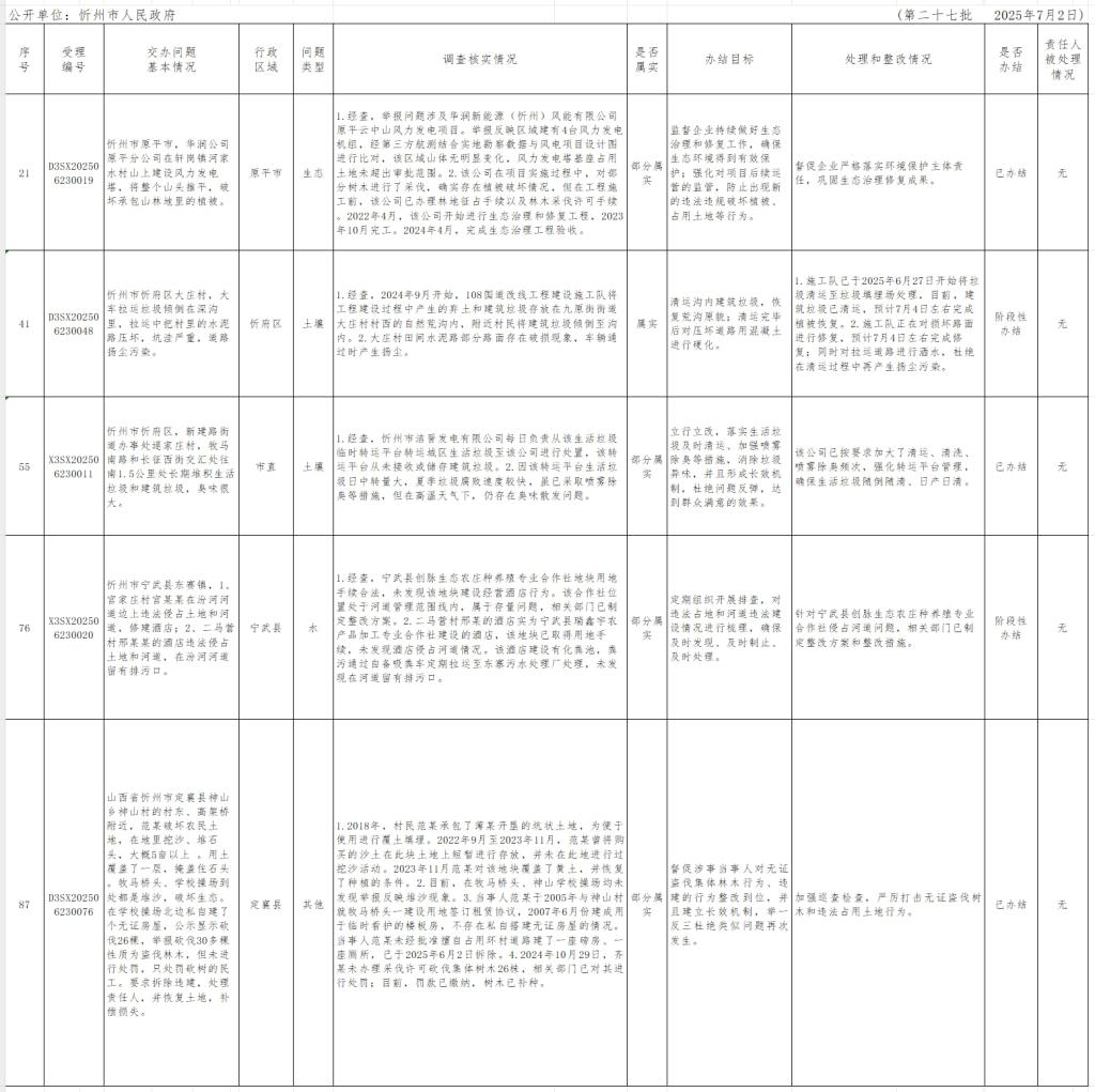 中央生態(tài)環(huán)境保護督察組群眾信訪舉報轉(zhuǎn)辦和邊督邊改公開情況一覽表(第二十七批)