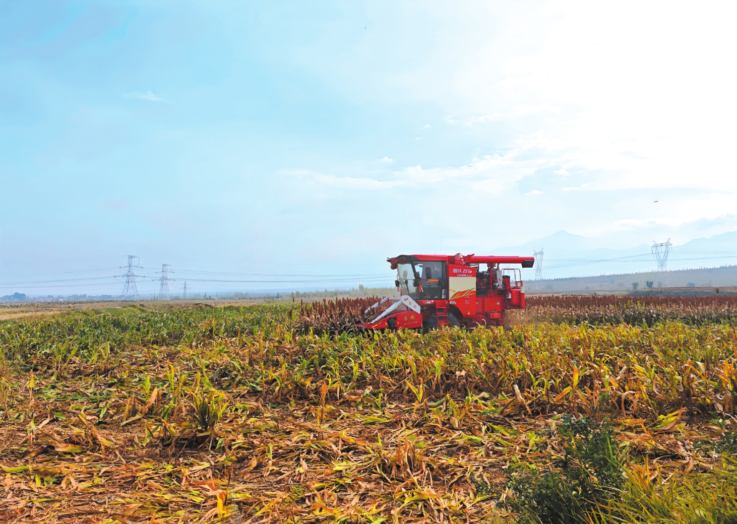 圖為村民正操作農機收獲高粱。本報記者 趙丹琦攝