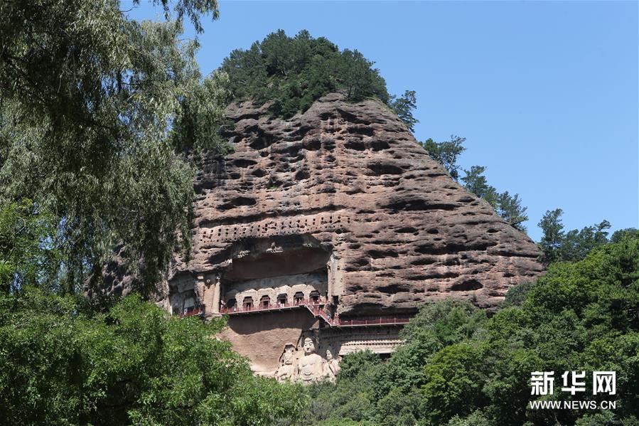 麥積山石窟位于甘肅省天水市境內(nèi),始建于距今約1600年的后秦,現(xiàn)存窟龕221個,各類造像一萬余身,以其精美的泥塑藝術(shù)聞名,被稱為“東方雕塑陳列館”。