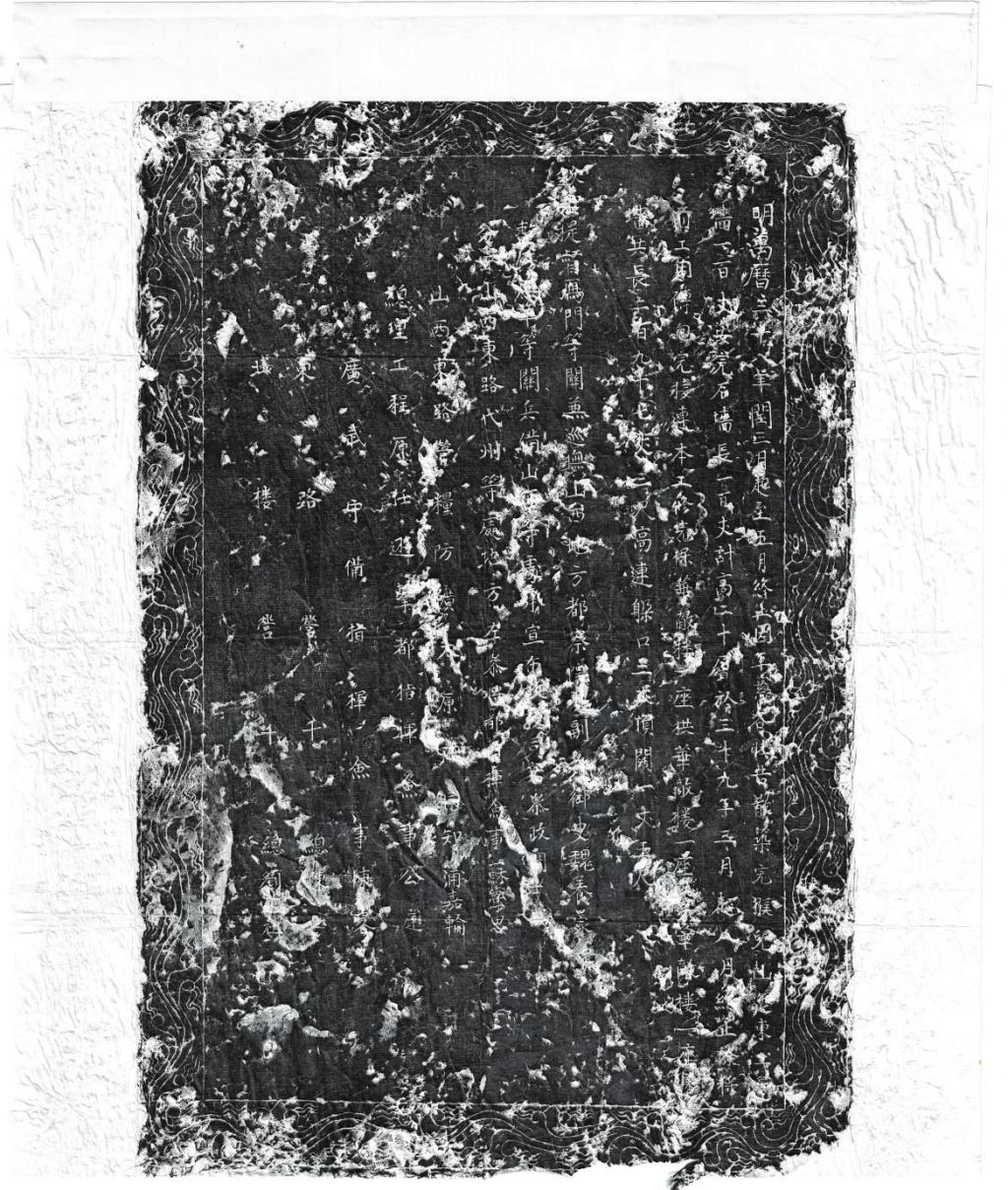 『明萬(wàn)曆三十八年閏三月起至五月終止因年荒各壯告散築完猴兒山迤東山邊』『墻一百丈安完石墻長(zhǎng)一百丈計(jì)高二十層於三十九年三月起八月終止除將』『工用磚包完接連本工修完保華敵樓一座拱華敵樓一座鞏華敵樓一座新』『墻共長(zhǎng)二百九十七丈三尺高連垛口三丈頂闊一丈五尺』