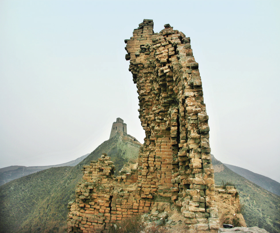碑文前4行記述了明代萬(wàn)歷三十八年(1610年)三月到五月修筑猴兒山以東山石墻一百丈,高二十層。萬(wàn)歷三十九年(1611年)三月到八月修筑磚墻和敵樓3座,3座敵樓分別命名為“保華”、“拱華”、“鞏華”。兩年修筑長(zhǎng)城總長(zhǎng)二百九十七丈三尺,長(zhǎng)城墻體連垛口總高三丈,頂寬一丈五尺。查找文物出版社《山西省明長(zhǎng)城資源調(diào)查報(bào)告》第十二章代縣長(zhǎng)城(1275—1279頁(yè)),此次發(fā)現(xiàn)碑記的6號(hào)敵臺(tái)位于白草口1段長(zhǎng)城上,敵臺(tái)券門(mén)上方嵌砌的敵臺(tái)名稱(chēng)碣石已被破壞無(wú)存,碑文所記修筑3座敵樓極有可能為白草口1段長(zhǎng)城4號(hào)、5號(hào)、6號(hào)敵臺(tái)。所計(jì)墻體高連垛口三丈、頂闊一丈五尺與調(diào)查報(bào)告記錄的墻體高度6.2—8.2米、垛口高1.4米、頂部殘寬2.2—4.2米相近。代縣白草口1段長(zhǎng)城北接朔州市山陰縣新廣武長(zhǎng)城3段,新廣武長(zhǎng)城3段16、17、18、19號(hào)敵臺(tái)保存完好,券門(mén)上方嵌砌的碑碣均刻有“萬(wàn)歷丙午中秋之吉、巡撫都御史李景元”文字,萬(wàn)歷丙午為萬(wàn)歷三十四年(1606年),說(shuō)明代縣白草口1段長(zhǎng)城修筑時(shí)間比朔州市山陰縣新廣武長(zhǎng)城3段晚了4年。