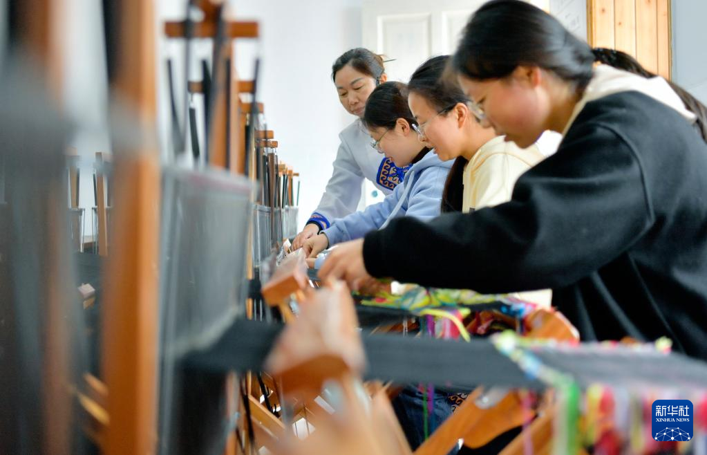 春暖花開時(shí)節(jié),湖北省宣恩縣西蘭卡普傳承基地迎來(lái)各地的學(xué)生前來(lái)研學(xué)。學(xué)生們?cè)谶@里了解土家織綿文化、學(xué)習(xí)傳統(tǒng)手工技藝,感受非遺文化的魅力。西蘭卡普是一種土家織錦,色彩鮮明,紋樣美觀,其編織技藝被列入國(guó)家級(jí)非物質(zhì)文化遺產(chǎn)名錄。新華社發(fā)(宋文攝)