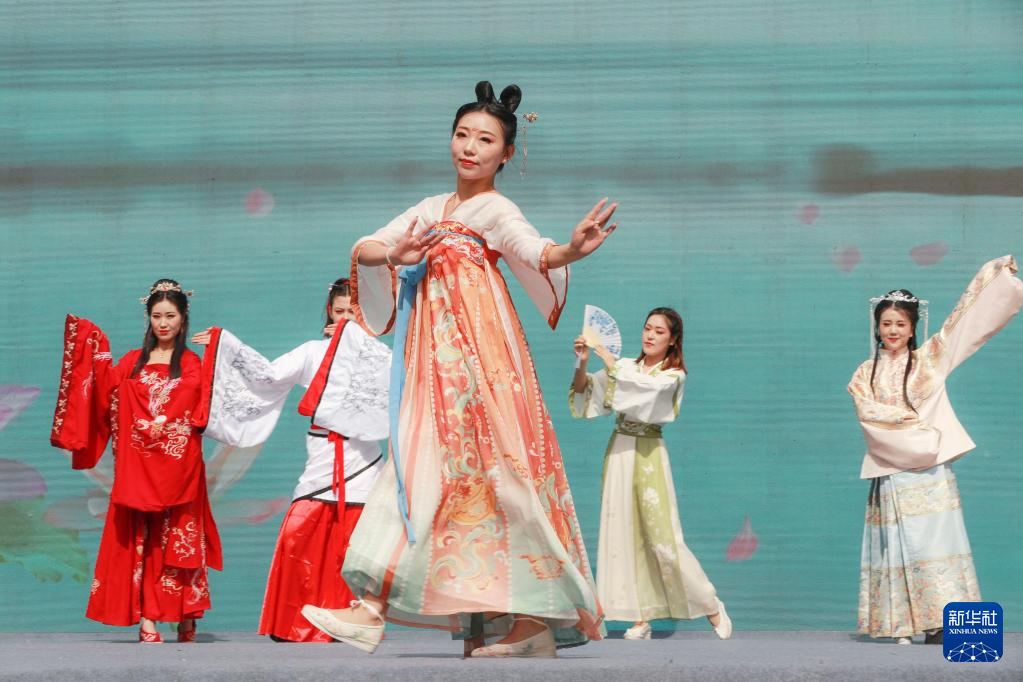 當(dāng)日,河南省葉縣首屆漢服文化節(jié)在縣城葉園開幕。漢服巡游、漢風(fēng)國韻演出等豐富多彩的活動(dòng),吸引了眾多游客和市民前來觀看,感受漢服文化的魅力。新華社發(fā)(何五昌攝)