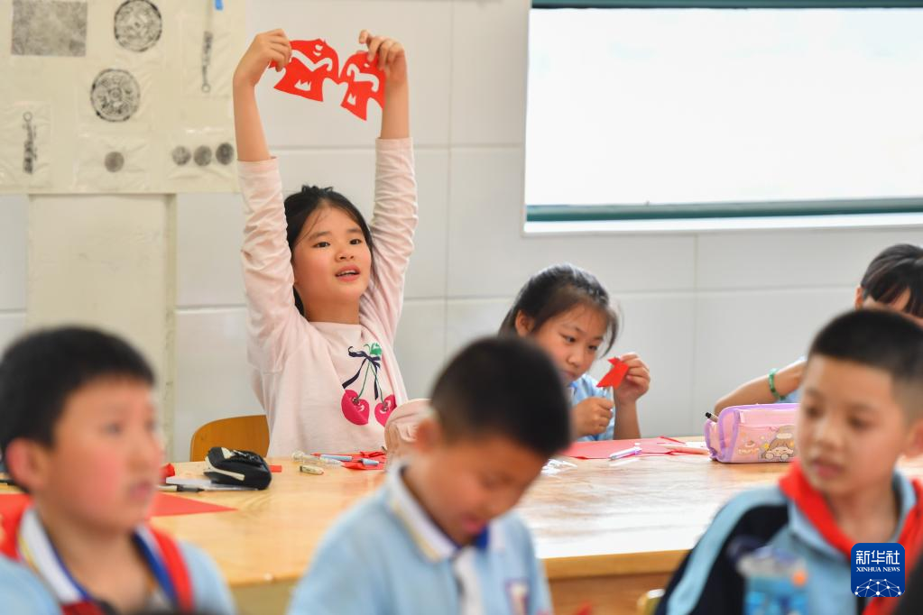 5月15日,在長(zhǎng)沙市天心區(qū)紅衛(wèi)小學(xué),學(xué)生在剪紙藝術(shù)課上展示作品。