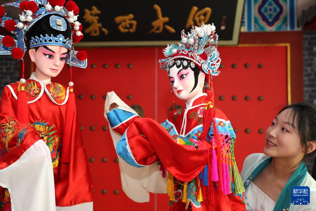 5月21日,在山東青島,萊西木偶藝術(shù)團(tuán)的演員在整理木偶裝扮。