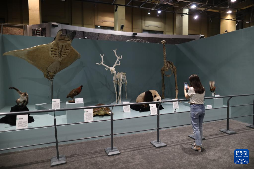 6月5日,參觀者在國家自然博物館內拍攝展品。?